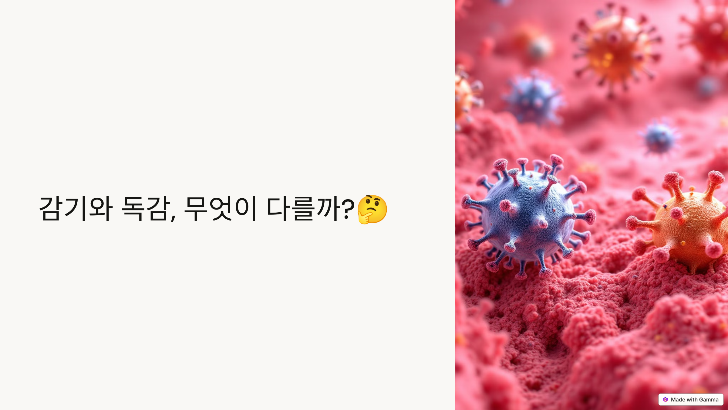 - "감기와 독감은 같은 병이다?" → 아니요! 감기는 경미한 질환, 독감은 심각한 합병증을 유발할 수 있습니다.